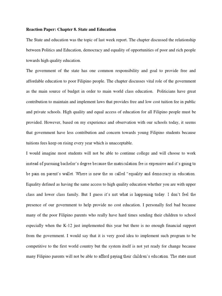 Hire us for your essay or paper writing needs. Economies of scale and specialization have led to a much better way of using resources in the economy, and as a consequence of these forces of trade, the standard indicator of productivity. Thus, you have to focus on one of the aspects of education. Oct 27, 2015 · book description: A reflection paper is less formal as compared to the traditional academic paper.